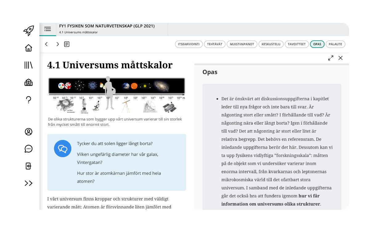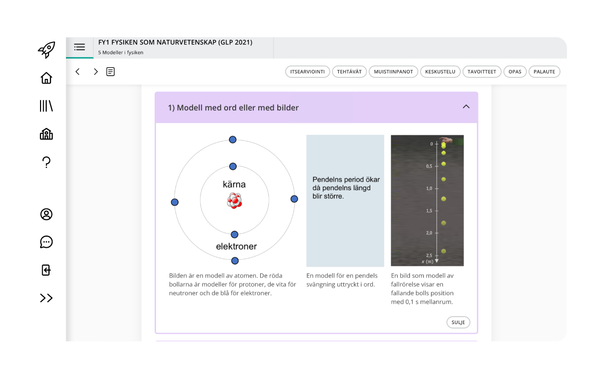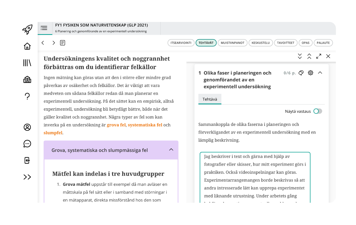 • Den studerande och läraren får ett gott stöd för experimentella arbeten och användning av programvara: många videor, exempel och uppgifter.