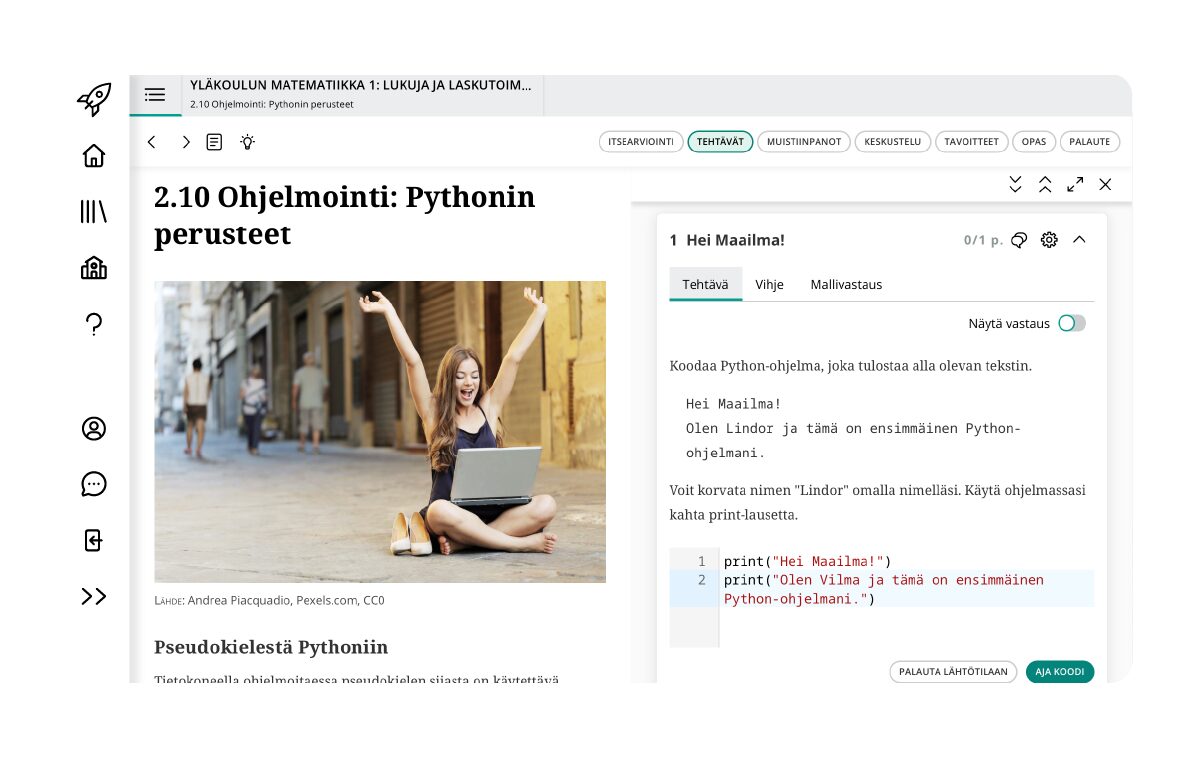 Varaa Studeon tekijäryhmä esittelemään oppiaineesi Studeon oppimateriaaleja. Esittelyssä sinulla on mahdollisuus esittää kysymyksiä ja keskustella juuri sinun oppiaineesi ja koulusi materiaalien hankintatarpeista. Kerromme hinnoittelumallistamme ja siitä, miten Studeon alustan avulla opetus ja oppiminen on entistä sujuvampaa.