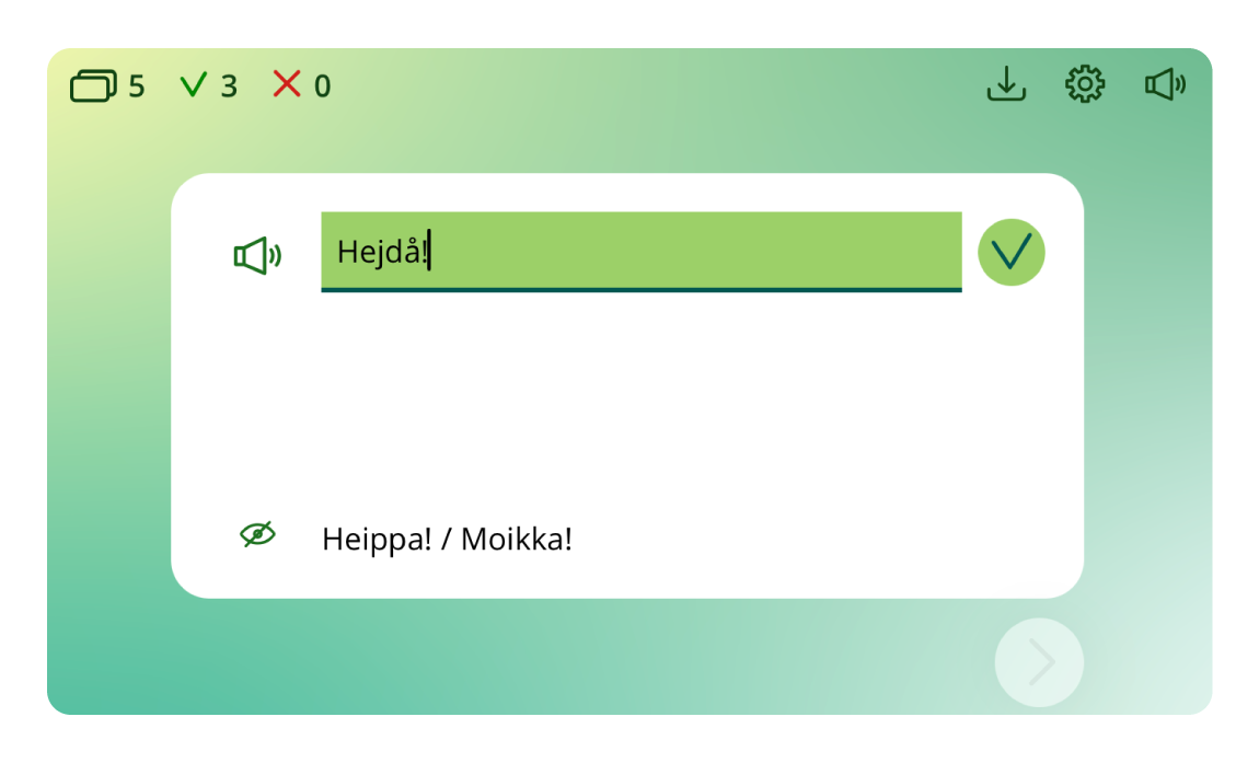 - Ääntämisharjoituksissa on tarjolla sekä suomenruotsalainen että ruotsinruotsalainen ääntämismalli.